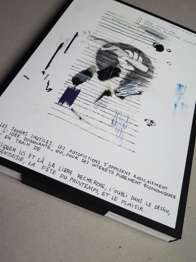 Quelques vingt-quatre années, douze recueils auto-édités, un catalogue, un incroyable livre d’artiste et une poignée d’expositions plus tard, Déséblouir présente un choix de 112 planches sélectionnées sur ces douze dernières années avec l’ambition d’élaborer UN livre cohérent. Soit une proposition d’œuvre “achevée” dégagée par une vision subjective extérieure parmi l’infinité d’ouvrages potentiels contenus dans un travail revendiquant l’inachevé, l’ouvert, la recherche et l’éternel recommencement.