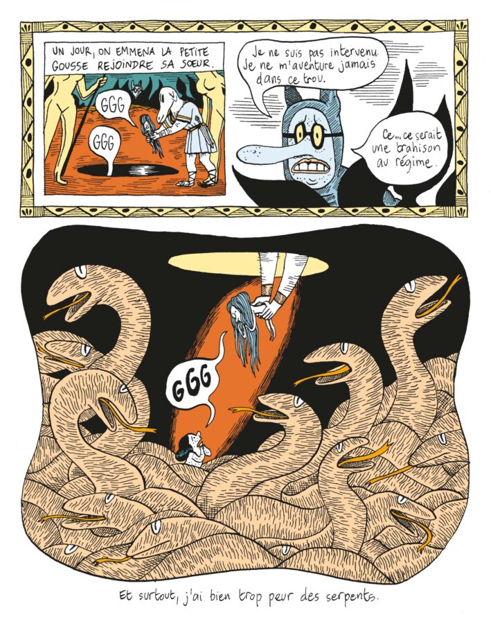 Les enfants furent abandonnées dans une fosse grouillante de serpents. Elles y grandirent tant bien que mal. Délivrées le jour de la victoire d’Aglaé sur leur père puis rejetées par une société qui renie leur ascendance, elles commencent leur vie d’errance.