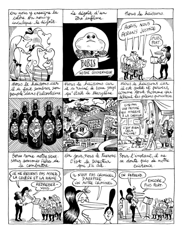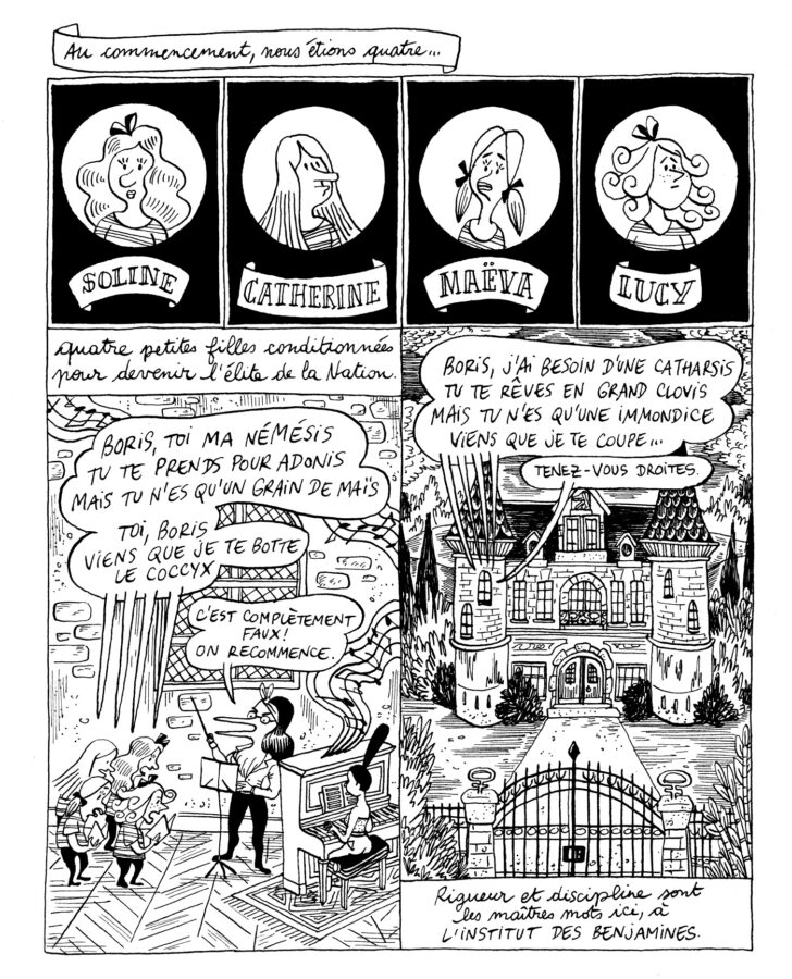 Boris est au pouvoir et Simone, qui le déteste, fulmine. Toujours aussi habitée, l’ancien bras droit et ex-secrétaire d’Aglaé est bien décidée à contrer ce fils despotique et misogyne qui s’est imposé à la tête du pays en le faisant sombrer dans l’alcool et la misère. Pour cela, elle va créer le grand projet de sa vie : L’INSTITUT DES BENJAMINES. Avec Rita, sa fidèle assistante, elles kidnappent les petites filles croisées sur leur chemin et les séquestrent dans un pensionnat caché au fin fond d’une forêt.